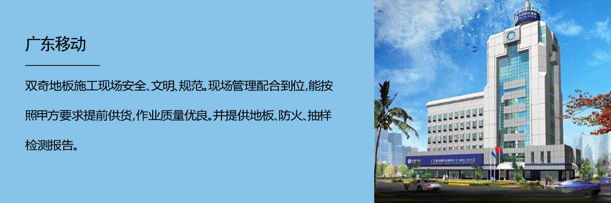 我們擁有經(jīng)驗豐富的銷售隊伍、完善的服務(wù)體系和經(jīng)驗豐富的研發(fā)部門,雙奇目前已經(jīng)為國內(nèi)眾多的企業(yè)和場所提供了優(yōu)質(zhì)的解決方案和良好的售前、售后服務(wù)。形成在地板領(lǐng)域的核心競爭力。
