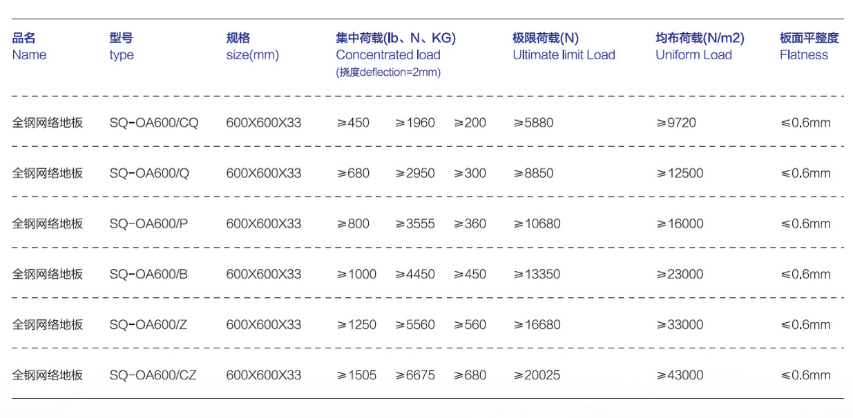 主材:地板外殼面板采用SPCC硬質(zhì)冷軋鋼板,底板采用ST14優(yōu)質(zhì)拉伸板。