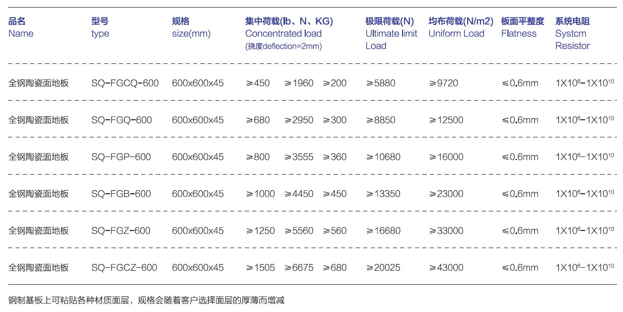 主材:地板外殼面板采用SPCC硬質(zhì)冷軋鋼板,底板采用ST14優(yōu)質(zhì)拉伸板。